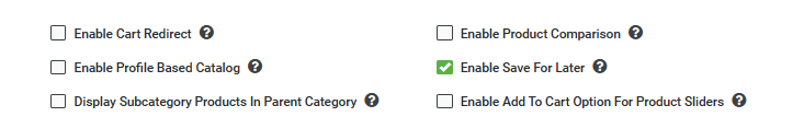 | Enable Product Comparison | When this setting is checked and saved, the option for product comparison is available on the store. This setting works with the “Save” action, and no store publish is required. |