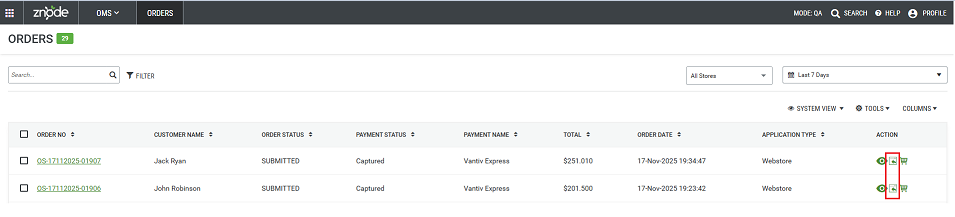 Navigate to: OMS > Orders