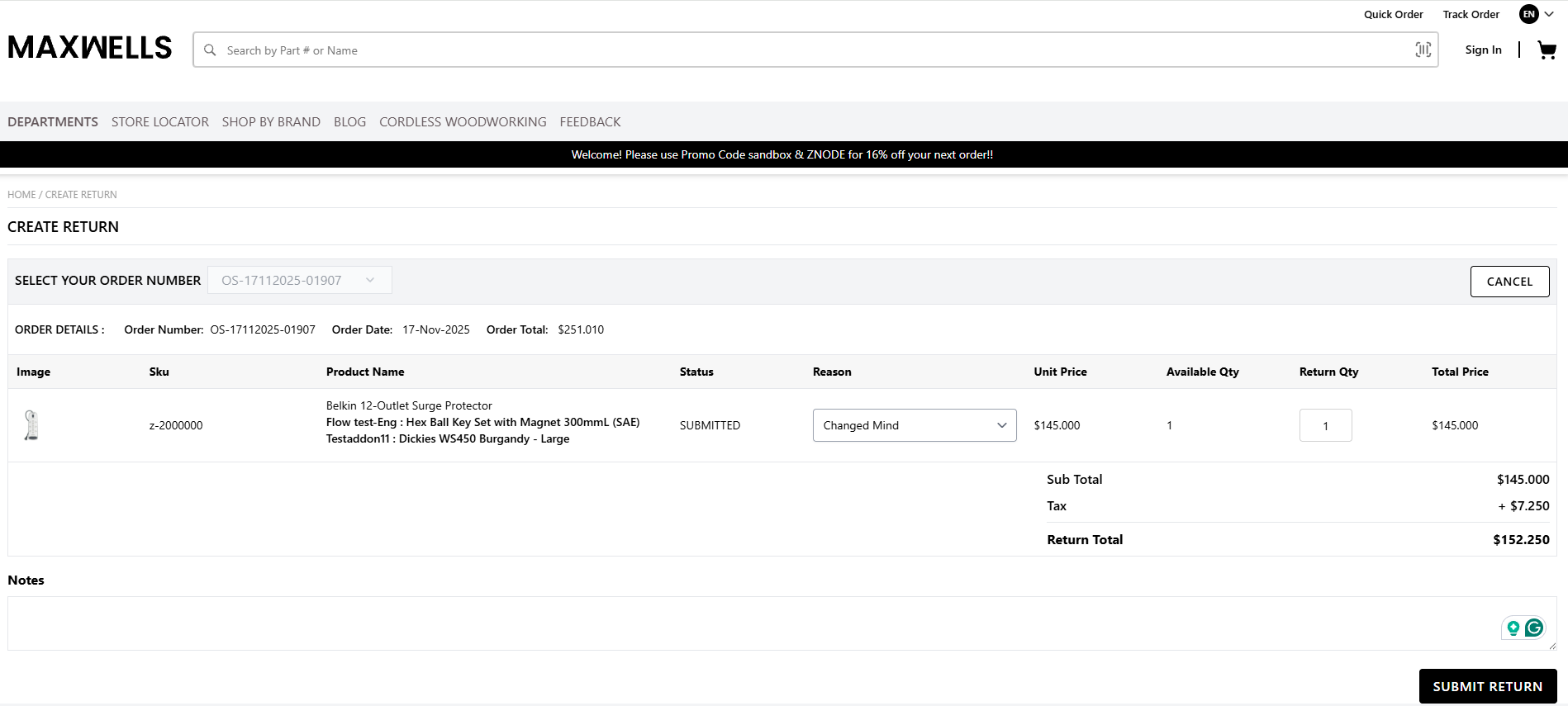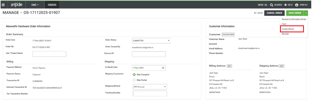 The znode application allows users to create multiple Returns (i.e., Return/Cancellation Requests) for a single order. This article provides information about how a Return can be created for users from the admin and Webfront.