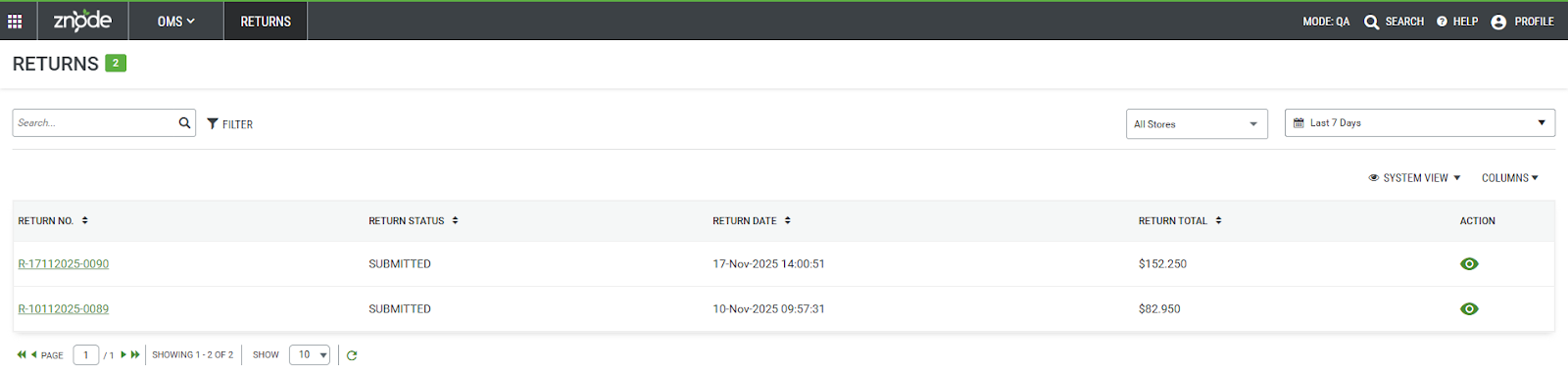 The returns list is a centralised location from where admin users can view, search and filter, and manage Returns for all the Znode stores. This article provides information about how different elements from a Return can be managed and how they impact other features.