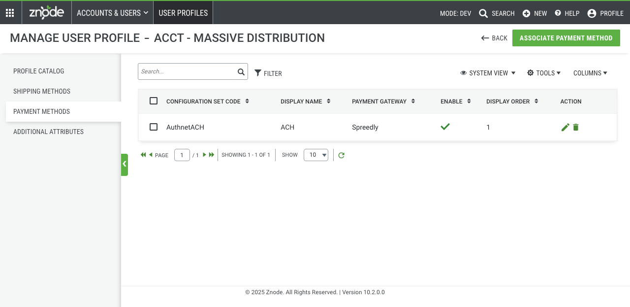 - Ensure that the payment method is correctly associated with the user profile (Accounts & Users > User Profiles > Manage> Payment Methods> Associate Payment Method) where you want the payment method to appear. The payment method should also be activated.