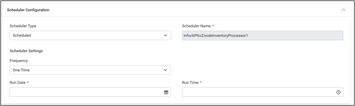 The Scheduler Configuration controls the schedule on which the data exchange is run. The fields that require configuration change based on the “Scheduler Type” selected.