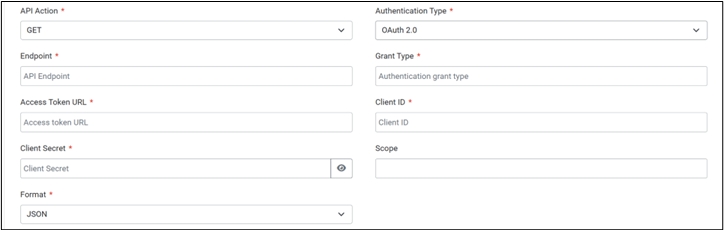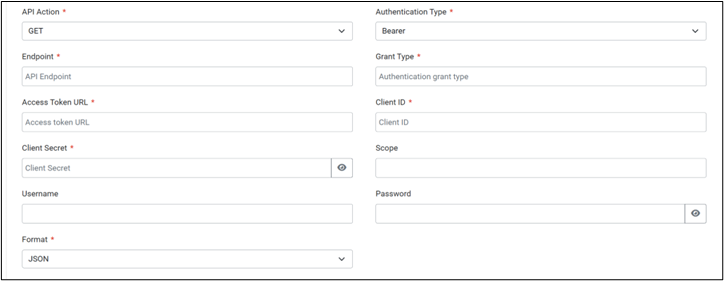 Authentication Type | Type of authentication to use when calling the endpoint. Options: Basic, OAuth 2.0, Bearer |