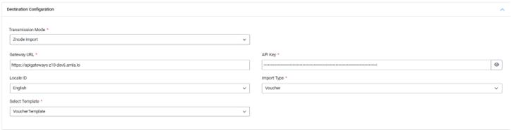 The Destination Configuration section includes all the functionalities of the Source Configuration section, with an additional feature specifically designed for Znode Imports. This feature simplifies the configuration process when Znode is selected as the destination.