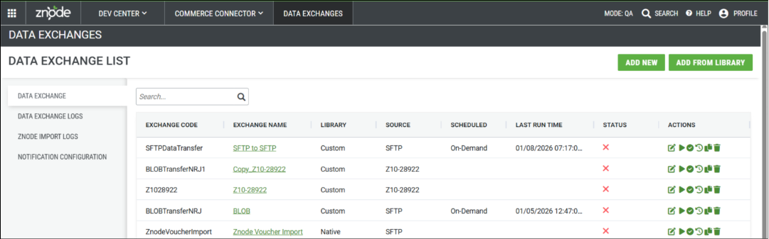 Navigate to: Dev Center > Commerce Connector > Data Exchanges