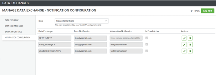 The email templates used while triggering the data exchanges notification emails will be configured in the Email & SMS Templates in Znode