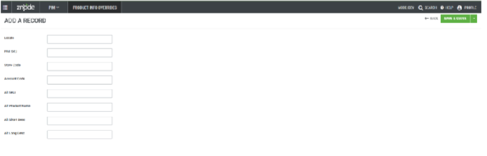 - Navigate to PIM → Product InformationOverrides and click on the Add a Recordbutton to create a new record.