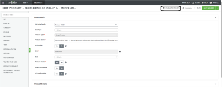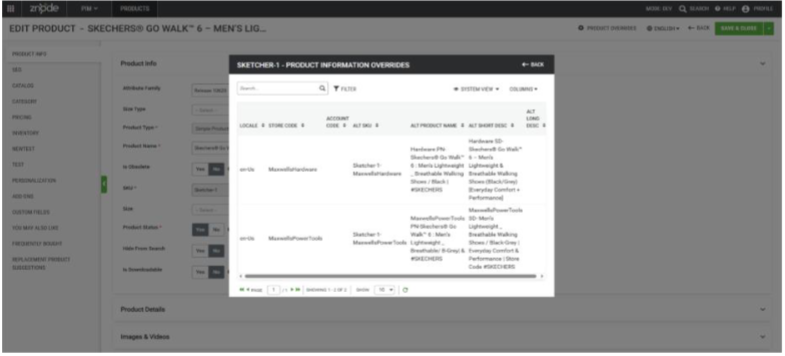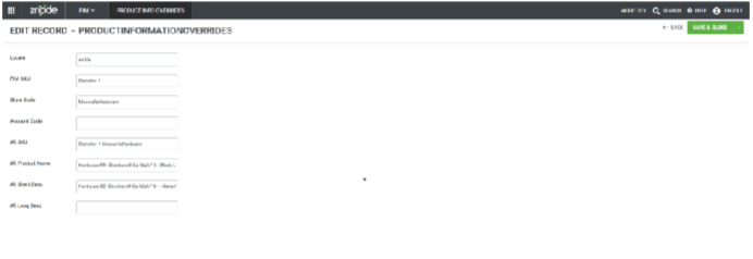 - The Product Information Overrides feature in Znode 10 enables administrators todisplay customized product content for the same SKU based on shopper context. Product details such as Product Name, Short Description, and Long Descriptioncan be overridden according to Store, Account, or Locale settings.