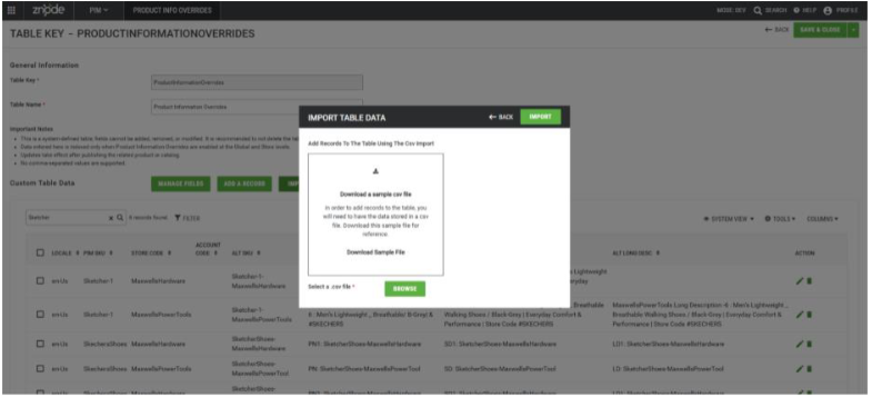 - Product Information Overrides (Custom Table Management)