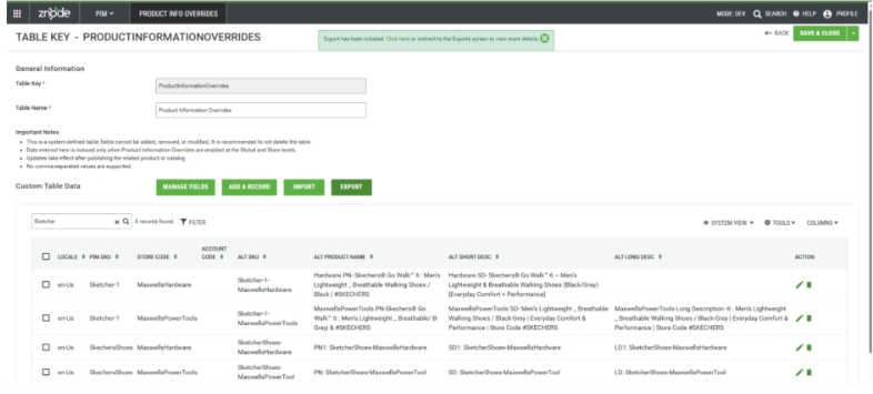 - Navigation Path: PIM → Product Information Overrides