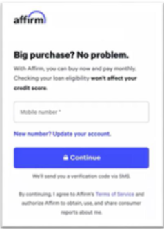 - Wait while Affirm checks your eligibility. (No action required during this step.)
