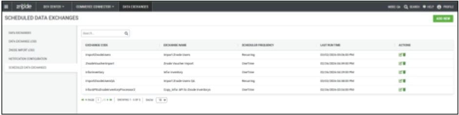 - Displays all enabled scheduled data exchanges in a centralized list view.