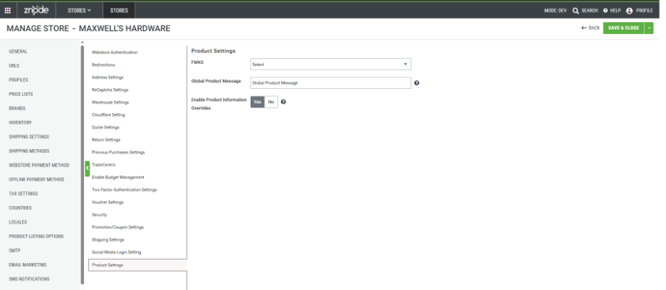 Navigation Path: Global Settings → Global Product Settings → Enable Product Information Overrides