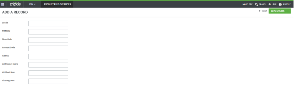 To configure Product Information Overrides, override records must be created with the following attributes.