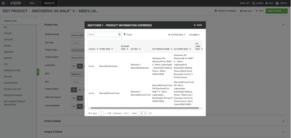 - Znode returns overridden product data instead of default PIM data (when override APIs are consumed).